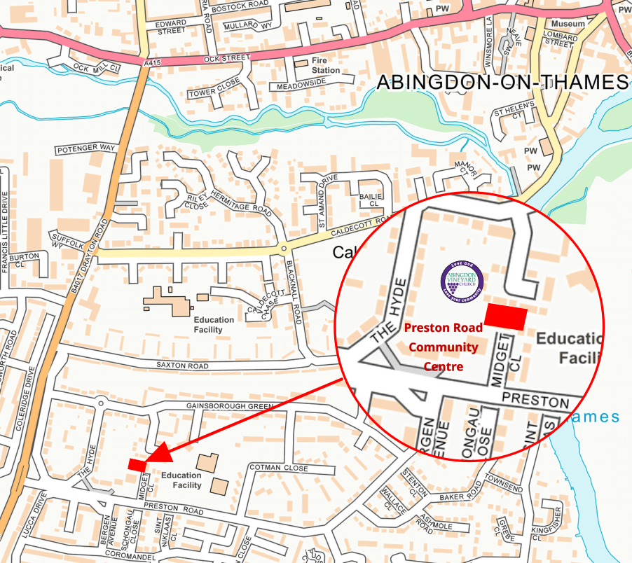 Welcome to the Vineyard Church in AbingdonWe meet each Sunday 10:30 to 12 noonAt Preston Road Community CentreAbingdon OX14 5NR